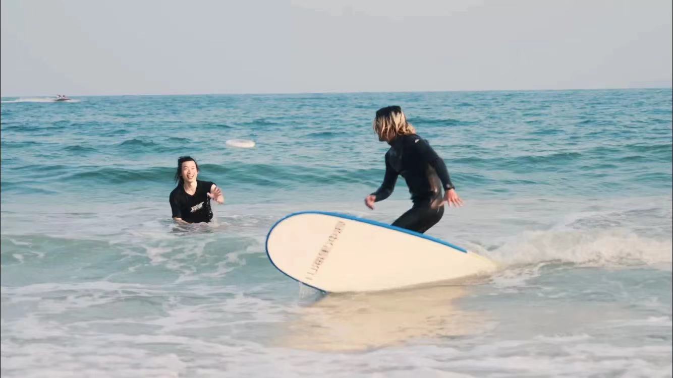 大家都说,夏天是海盐冰淇淋味儿的,美丽的大海(海)、飞盘人的颜(盐)值、海水的冰(冰)凉,浪板上接飞盘的奇(淇)妙感受,以及被海水淋(淋)湿的你,这样的你拥有了整个夏天。