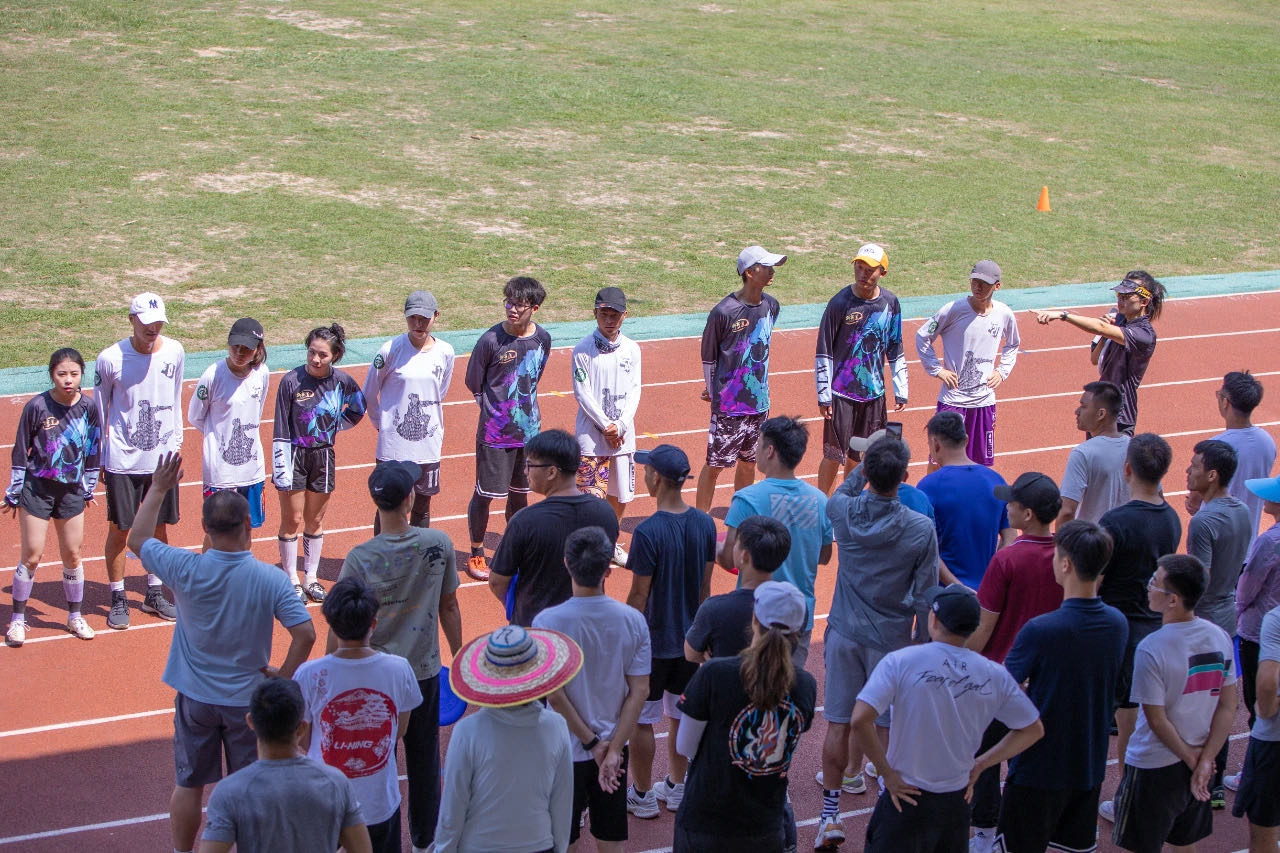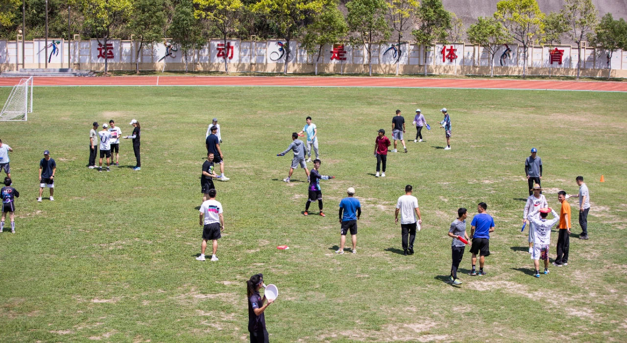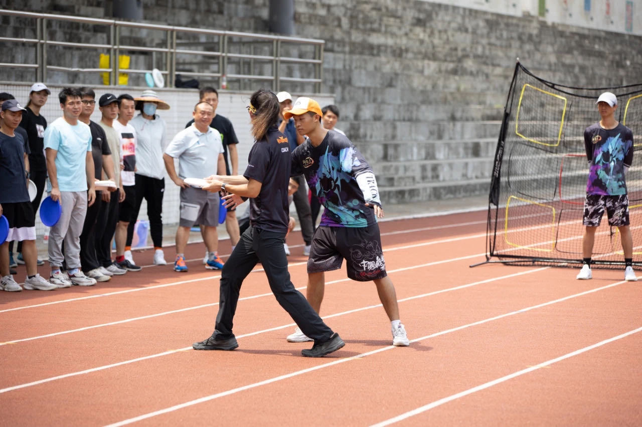 本次授课通过理论+实践的课程设置,先在课堂上向各位学员介绍飞盘运动,如极限飞盘、飞盘高尔夫、勇气赛、花式飞盘、沙滩极限飞盘、飞盘越野赛、躲避盘等,接着在操场上进行实战演练。国家飞盘中级教练员陈聪带领各位学员,亲身演练做示范,通过各项飞盘训练和分组比赛,让学员们将学习到知识运用到实操当中,全体学员都显得尤为兴奋,激情满满,展现了一场精彩完整的飞盘训练比赛。