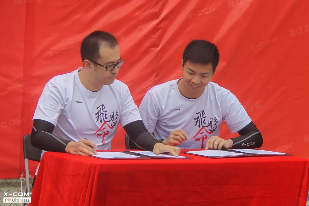 现场的飞盘玩家共同见证了X-COM与徐江军的签约现场。