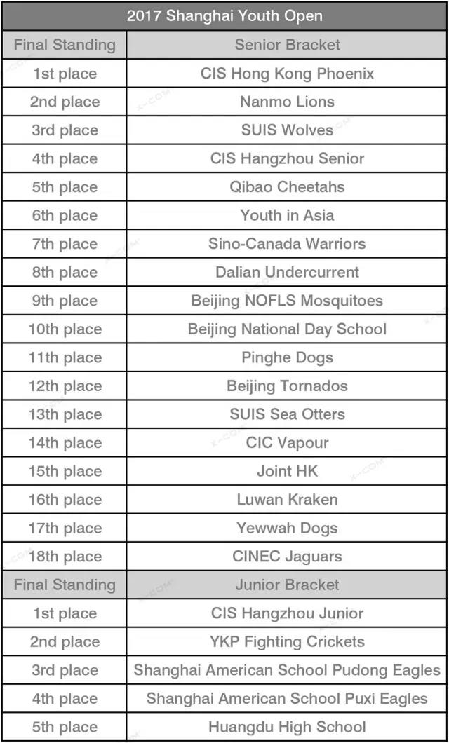 本次赛事分为高中组(Senior Bracket)与初中组(Junior Bracket)。